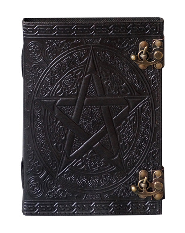 수제 블랙 오각형 양각 가죽 저널 펜타클 책 그림자 노트북 일기 황동 더블 C 잠금 플래너